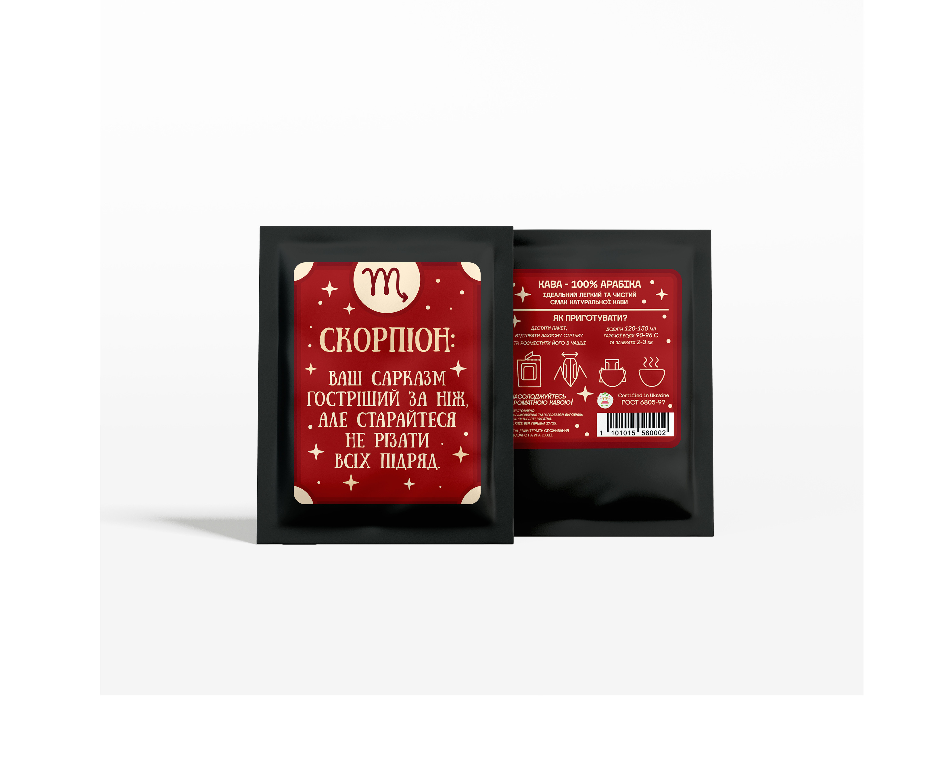 На кожній упаковці є передбачення за знаком зодіаку, що робить кожну чашку кави ще цікавішою.