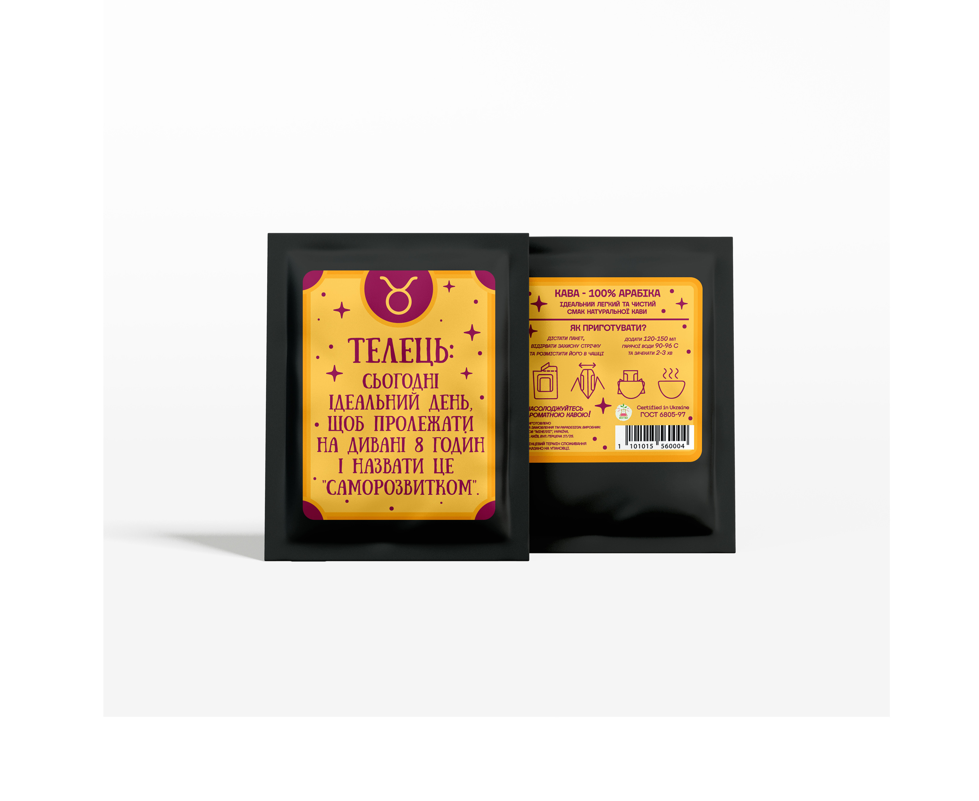 На кожній упаковці є передбачення за знаком зодіаку, що робить кожну чашку кави ще цікавішою.