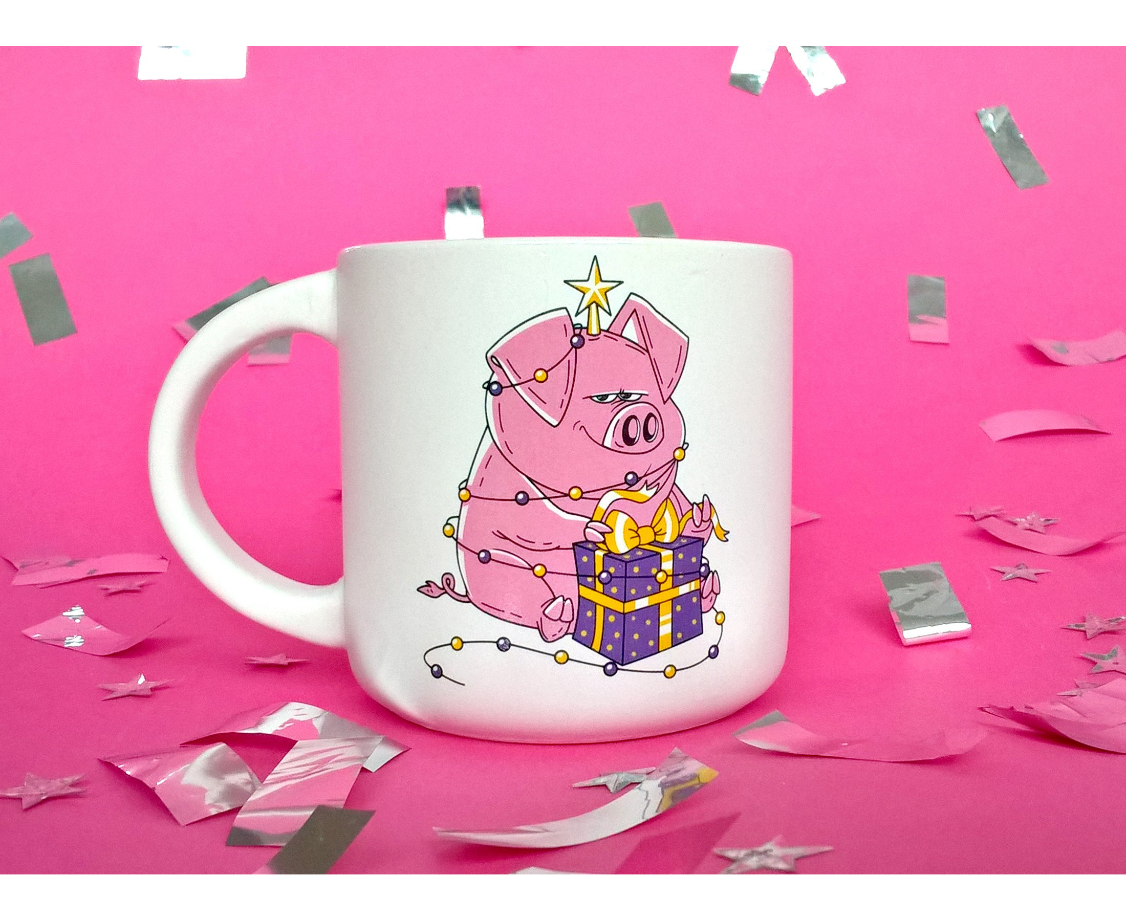 - «Новорічна хрюша» – це ціле море гарного настрою, позитиву і безодня новорічних чарівностей. Ось заварюєш смачні чай/каву/какао, береш до рук «Хрюшу» – і відразу весь простір заповнюється приємним відчуттям наближення казкового свята. Що вже говорити про те, наскільки важливий правильний антураж під час самих довгих, приємних і затишних сімейних новорічних свят. Ну негоже пити в зимові місяці зігріваючі напої з нудних чашок і кухлів. Та ще відкриваємо тобі один важливий містичний секрет. «Новорічна хрюша» заряджена не тільки на створення правильної атмосфери, але і на творіння чудес. Ми перевіряли на собі – так що щастя гарантуємо.