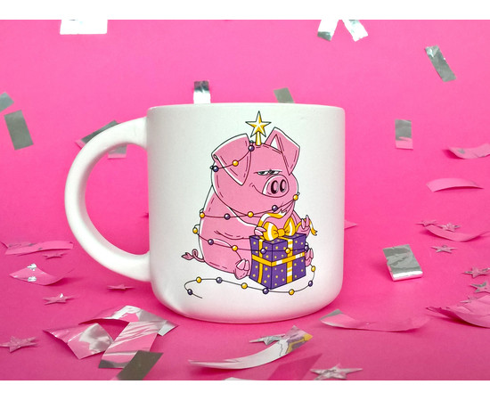 - «Новорічну хрюшу» можна легко замовити оптом. Навіть якщо одержувачі цього презенту знайомі між собою, і вони дізнаються, що всі отримали під ялинку від тебе цю веселу чашку – у них не виникне упередження з приводу однакових подарунків. Адже ясно ж – таку незвичну святкову чашку хоче мати кожен.