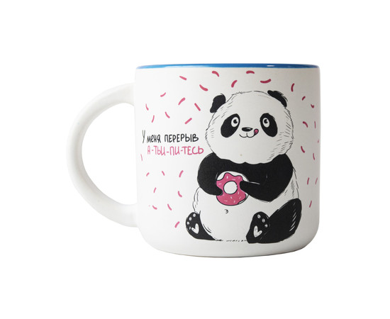 Вуаля, просимо любити й жалувати: унікальна і неповторна, чудова і прекрасна пані – весела й брутальна Панда. Так-так, це все вона – незвичайна чашка «У меня перерыв атьипитесь». Ага склокерамічна красуня все скаже цьому світу за тебе – і він не зможе більше тобі заважати насолоджуватися відпочинком, прекрасним днем і цим життям (ну, хоча б на 15 хвилин відчепиться – а це вже багато).
