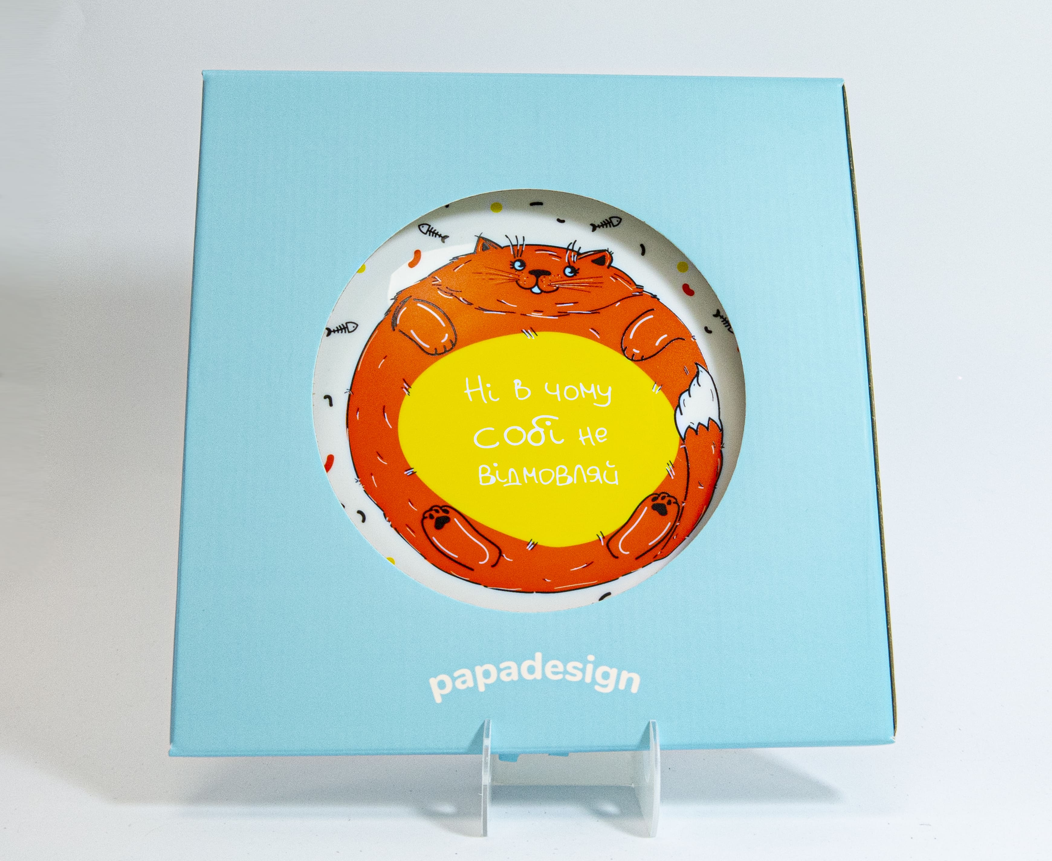 Ну, а якщо серйозно, то чому б наші суворі й сірі будні не скрасити яскравою і гарною плямою гарного настрою. Адже деталі вирішують усе, і є фундаментальними складовими прекрасного дня. Щоранку прокидаючись і йдучи на кухню снідати, ви будете мимоволі посміхатися дивлячись на цю кумедну тарілку. З таких мікро-посмішок і складається чудовий настрій протягом цілого дня*.