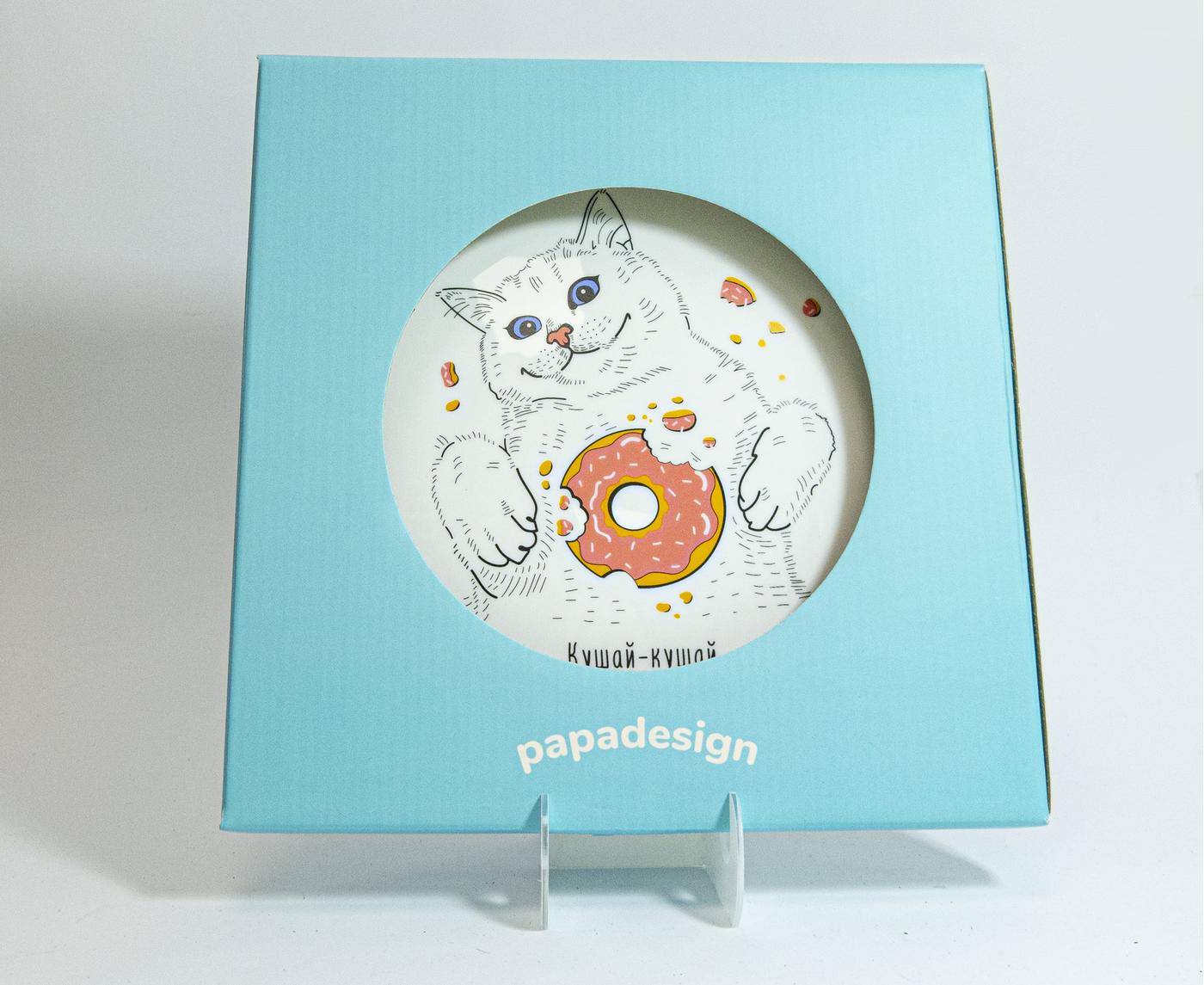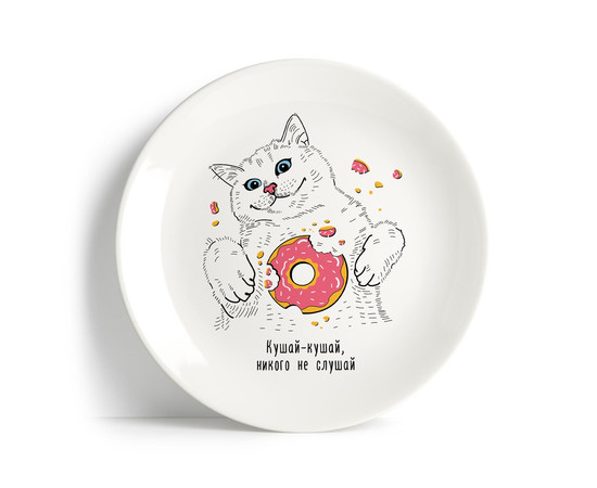 Нарешті у нас з'явилася тарілка для справжніх дівчаток, які люблять смачно пообідати і не рахують кожну калорію, що трапляється на їхньому шляху. Правило від PAPAdesign: якщо хочеш їсти – то йди та їж. Адже життя в нас тільки одне і витрачати його на дієти безглуздо. Цей котик-пончик так і манить відкинути до біса всі справи і приготувати різотто з овочами.